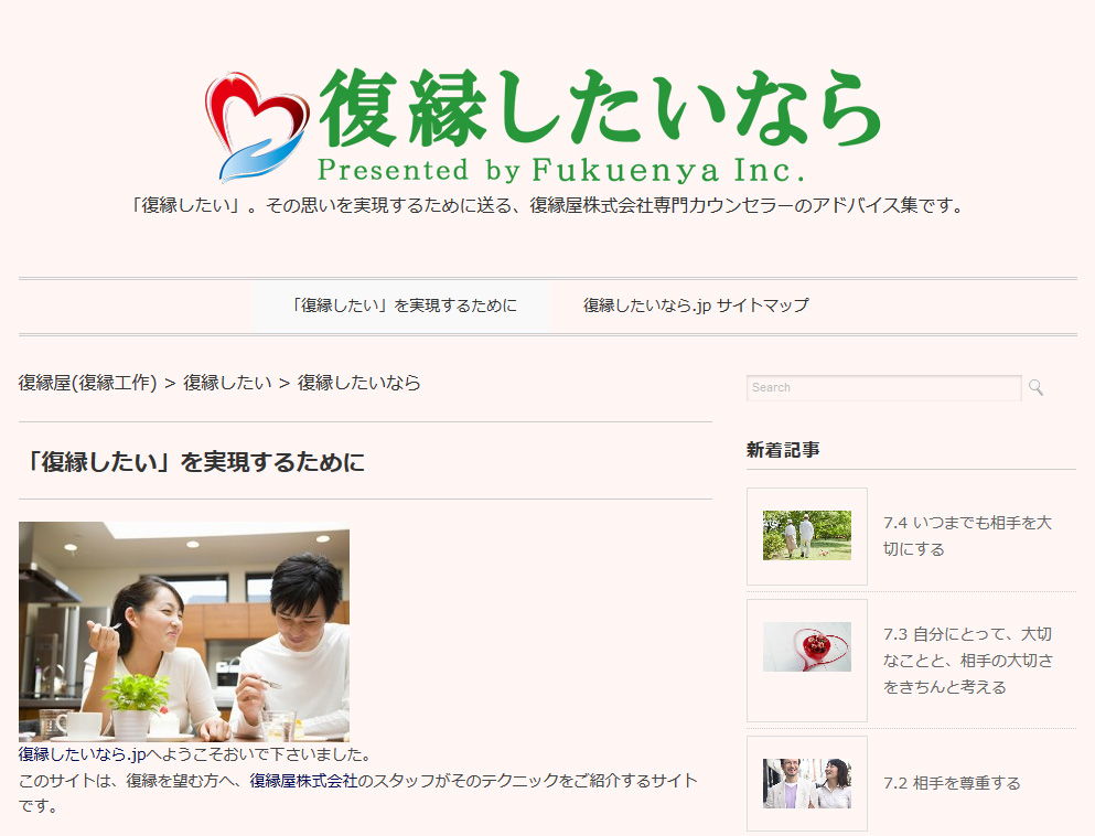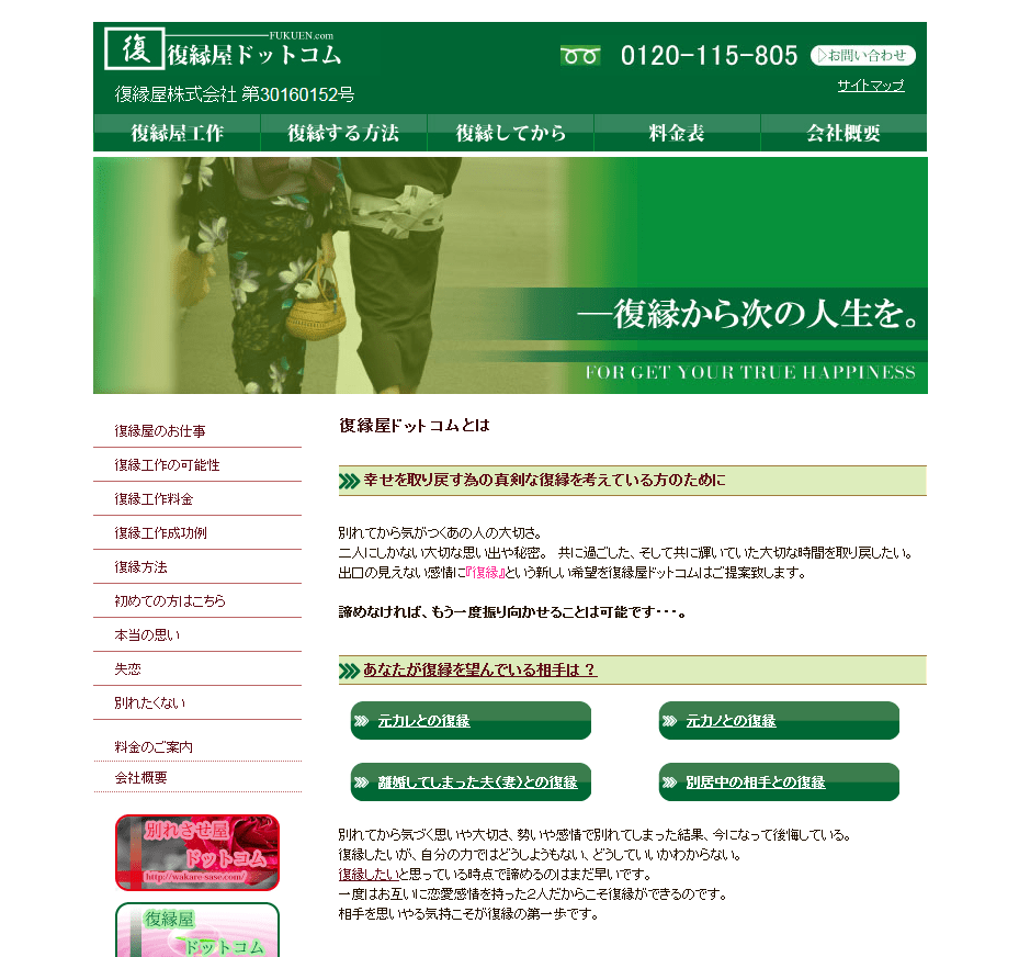 復縁屋の復縁カウンセラーによる復縁、復縁相談、復縁工作・電話・面談お申し込み※契約前のご相談料は無料です。